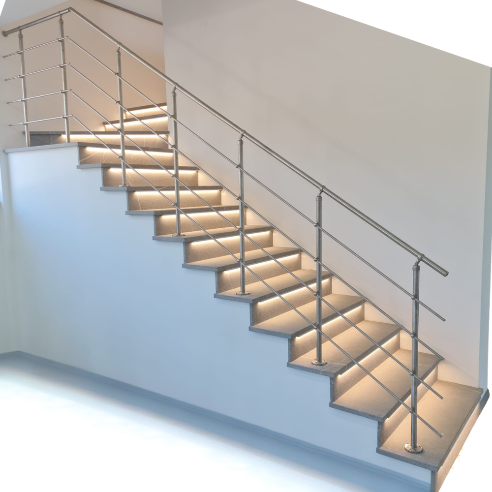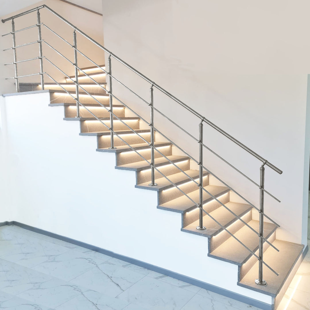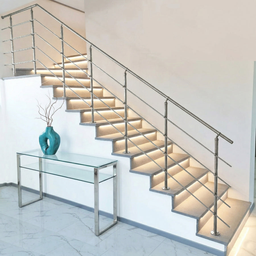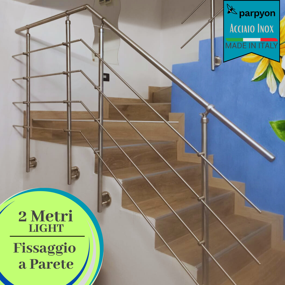 La ringhiera viene realizzata in Acciaio Inox AISI 304 [Per Uso INTERNO]- con finitura Satinata.