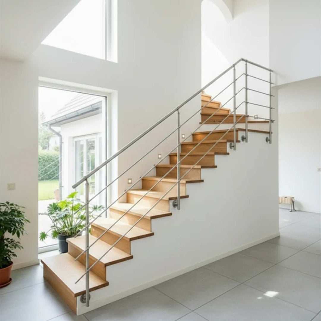 La misura va presa dall'inizio del primo gradino fino alla fine dell'ultimo gradino. Considera che la misura indicata va a determinare la lunghezza del corrimano e dei tubi traversini - In ogni caso i tubi corrimano e traversino si possono accorciare con un tagliatubi o seghetto con lama per Acciaio Inox [Dopo il taglio si consiglia di pulire bene il supporto e eliminare polvere di metallo dal tubo]