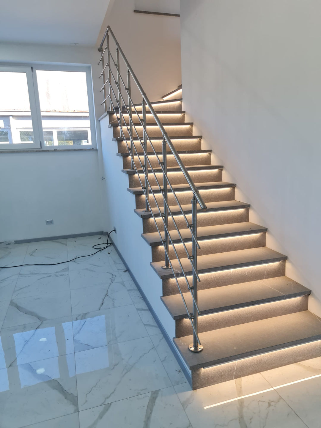La ringhiera viene realizzata in Acciaio Inox AISI 304 [Per Uso INTERNO]- con finitura Satinata.