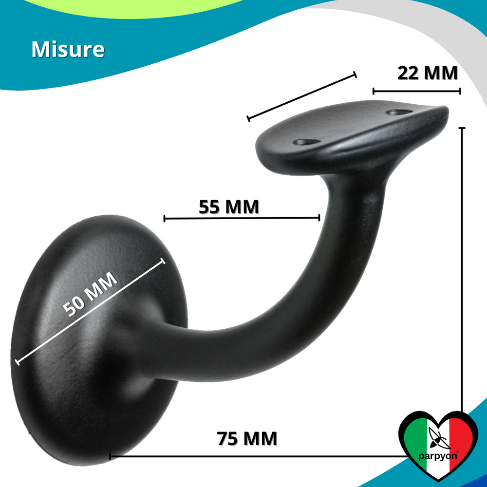 SUPPORTI V42R-NE: Parpyon Supporti per tubo in metallo o legno - Supporti Mod. V42R colore Nero Opaco disponibili in confezione da 1-2-3 pezzi
