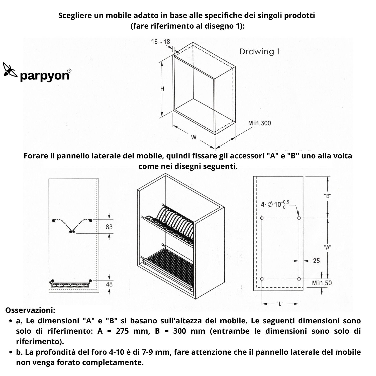 MONTAGGIO SEMPLICE: Installazione ad incasso, grazie ai supporti a Molla, basta prima verificare se all’interno del pensile c’è già la predisposizione dei fori, eventualmente provvedere ad allargare i fori esistenti o crearne altri (si consiglia di misurare prima il diametro e la profondità del supporto)